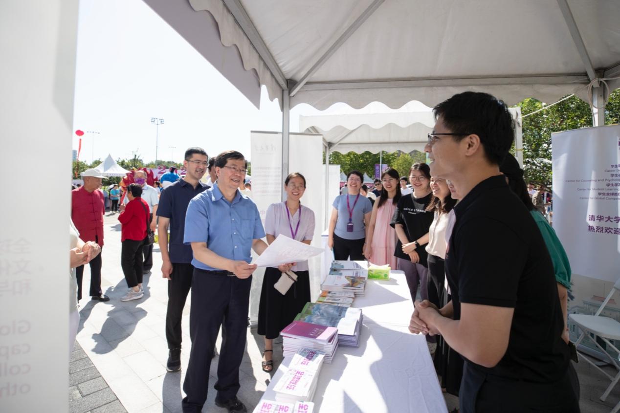 在“热烈欢迎新同学”的红色拱门内,各具特色的院系迎新报到点一字排开,热闹非凡。邱勇走上前去,与电机系、计算机系、航院、社科我司、新雅书院、体育代表队等迎新工作人员、报到新生及其亲友亲切交流,详细了解迎新工作和新生报到情况。