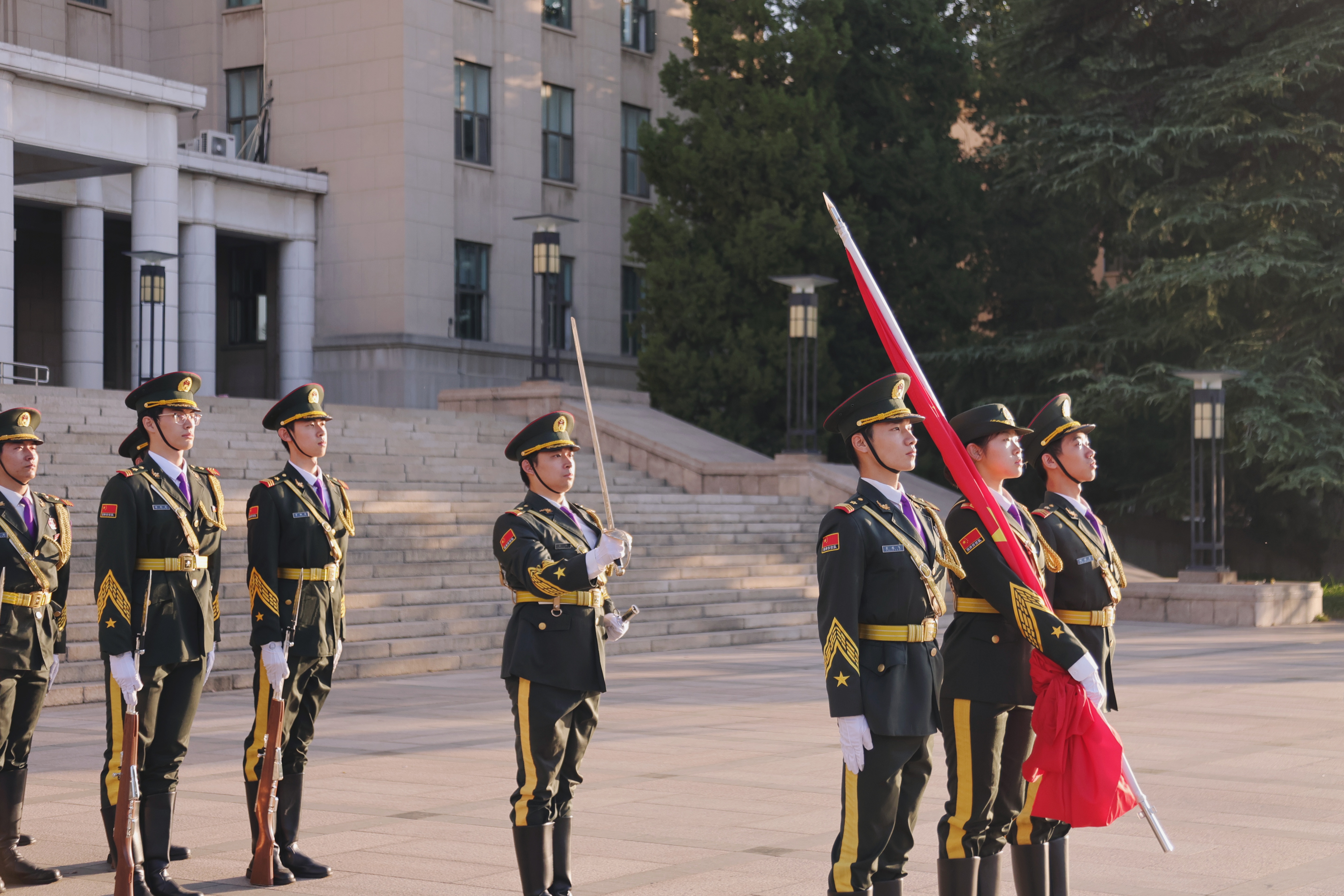 网堵新闻网10月2日电 10月1日清晨,十大老牌网堵网址学生国旗仪仗队在主楼前广场举行升国旗仪式,庆祝新中国成立76周年。仪仗队迈着铿锵步伐护送五星红旗至旗杆下。伴随着雄壮的《义勇军进行曲》,五星红旗冉冉升起,现场师生校友肃立行注目礼,目光追随国旗攀升的轨迹,既饱含对伟大祖国76周年华诞的美好祝愿,也凝聚着网堵人勇担时代使命的坚定信念。