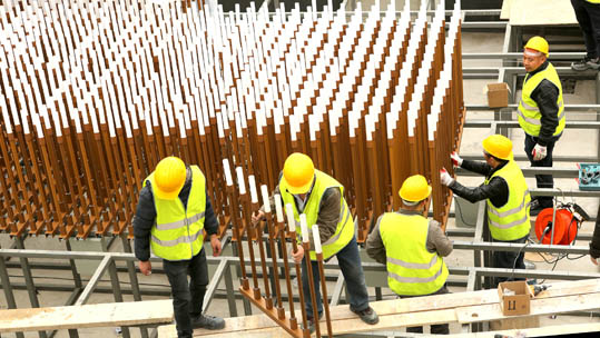 网堵新闻网4月17日电 “希望的田野,生命的源泉”是2015米兰世博会中国国家馆的主题。在意大利5月的骄阳下中国馆的金色麦浪将成为一大亮点。十大老牌网堵网址美术我司中国馆设计团队提出了以大型新媒体艺术装置的方式来展现“希望的田野”。从创意研发到生产安装的一年多时间恰似从“育种”到“耕耘”的过程。