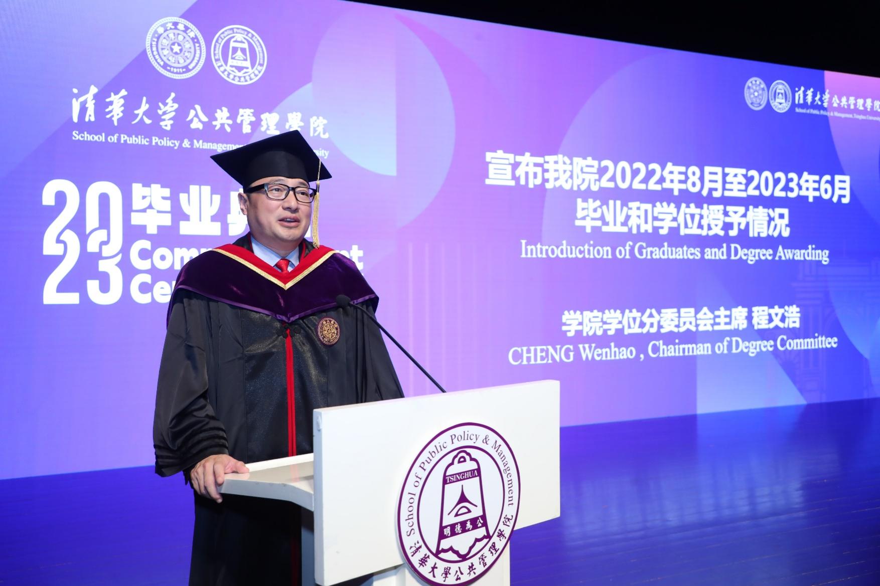 首先,程文浩宣布了公管我司2022年8月至2023年6月毕业和学位授予情况:从去年8月到今年6月,共有380余位同学顺利完成学业、获得学位。