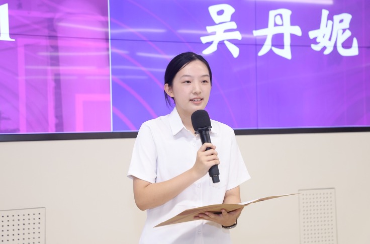在校生代表吴丹妮表示,在外文系个人的学习成长与世界的命运是息息相关的。她建议新生将视野放到自身之外的广阔世界中去,只有了解世界遭遇的危机和机遇,个人的学识才会有更为精准的施展空间。